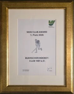 2026: Deutsche Meisterschaft mU18 - Aufstellung der Mannschaften vor dem Endspiel mit Bueraner Einlaufkindern. Es spielen der Harvestehuder THC gegen die Berliner Wespen. Der Titel geht nach einem packenden und eng umkämpften Spiel durch einem 5:3 (1:1) Sieg nach Hamburg.